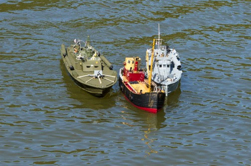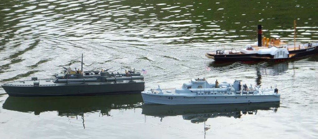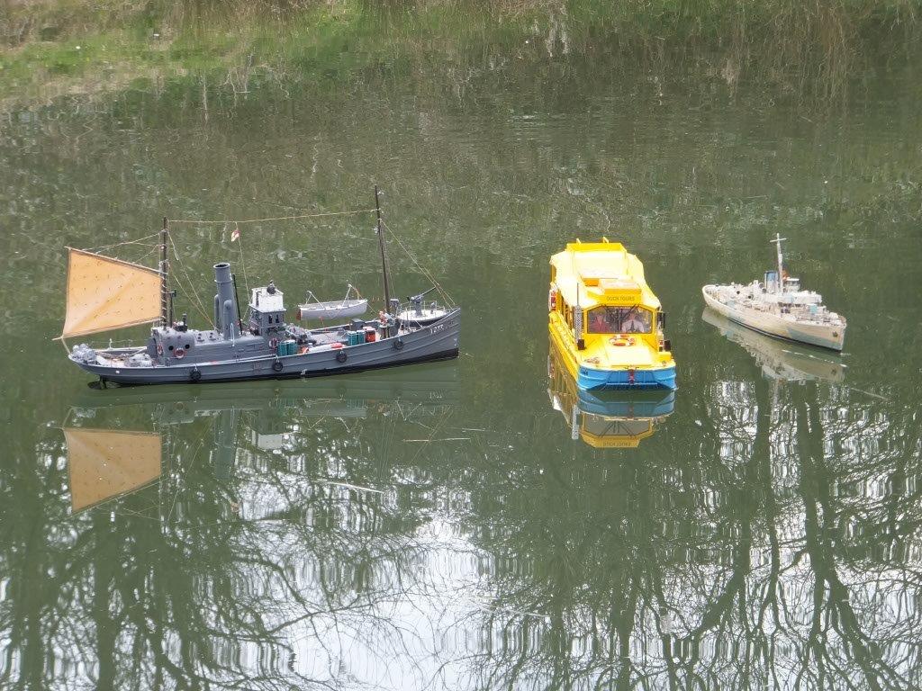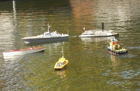 Models at winding hole, we can cruise from the canal basin half a mile to a weed free “Winding Hole” which makes a great change from your usual model boating pond.