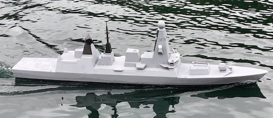 Steve’s very large model of a Type 45 Destroyer HMS Duncan, mechanically working well but not yet finished on the Model Boating Pool in Bournville